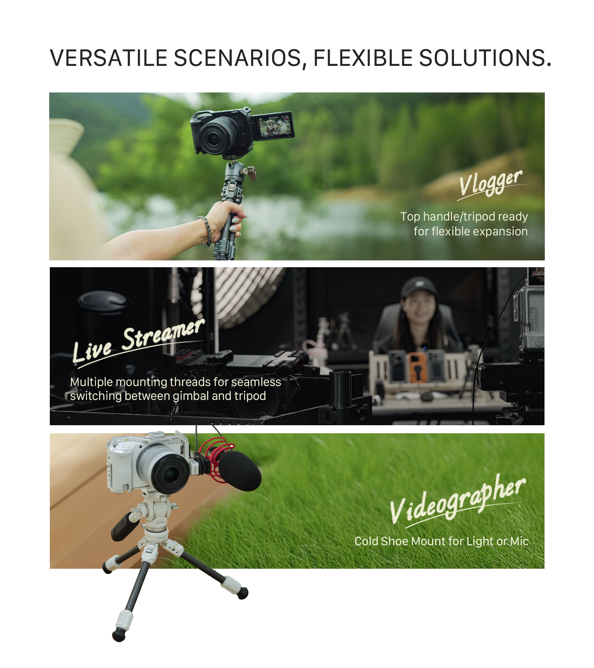We’ve included a built-in handgrip which features a silicone handle that fits closely to the curve of the palm, making this more comfortable to use handheld than a traditional camera cage.