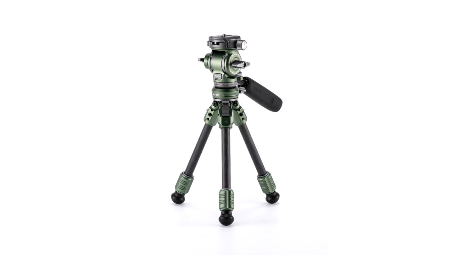 Introducing the Tabletop Video Fluid Head with 1-Stage Carbon Fiber Tripod Legs VT03, a versatile and compact tripod designed for precision and portability.